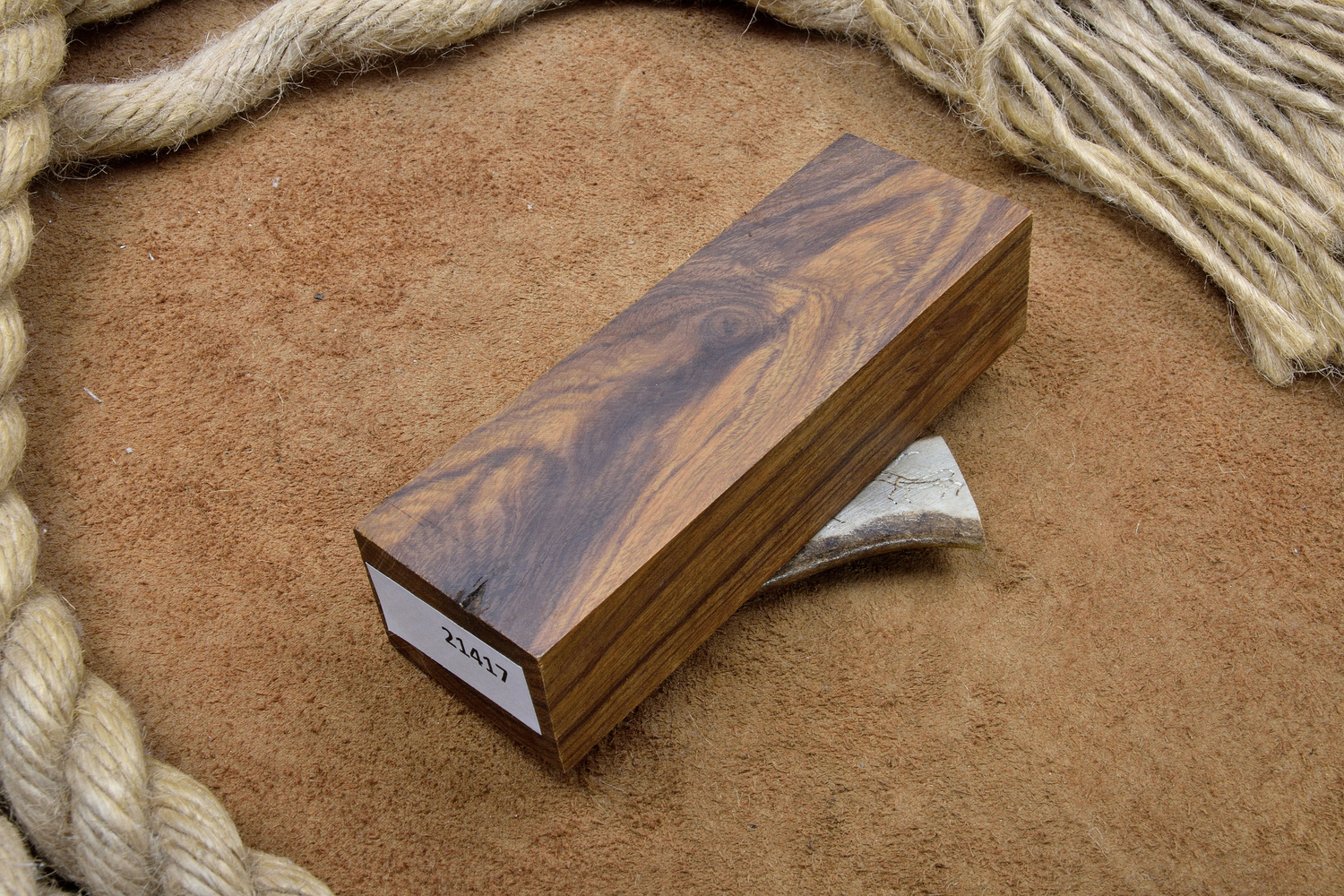 В целом, подходящей нутуральной древесины для наших ножей (накладной монтаж ручки) не так много - корневые и стволовые части айронвуда (железное дерево), все виды палисандра.... все сорта древесины, которые от природы пропитаны огромным количеством смол и не стабилизируются в принципе, поскольку никакой стабилизирующий раствор в них проникнуть не может.